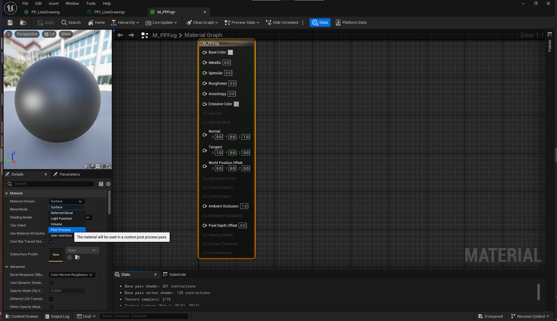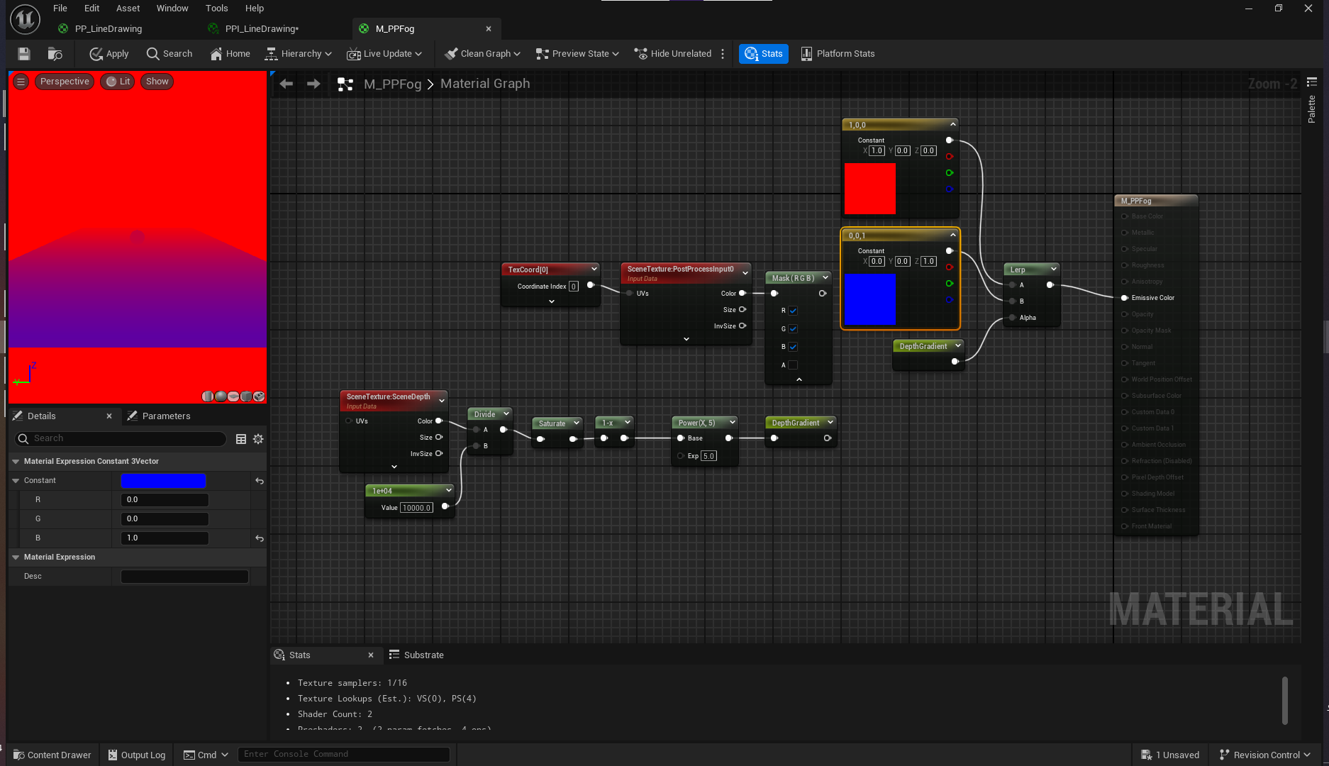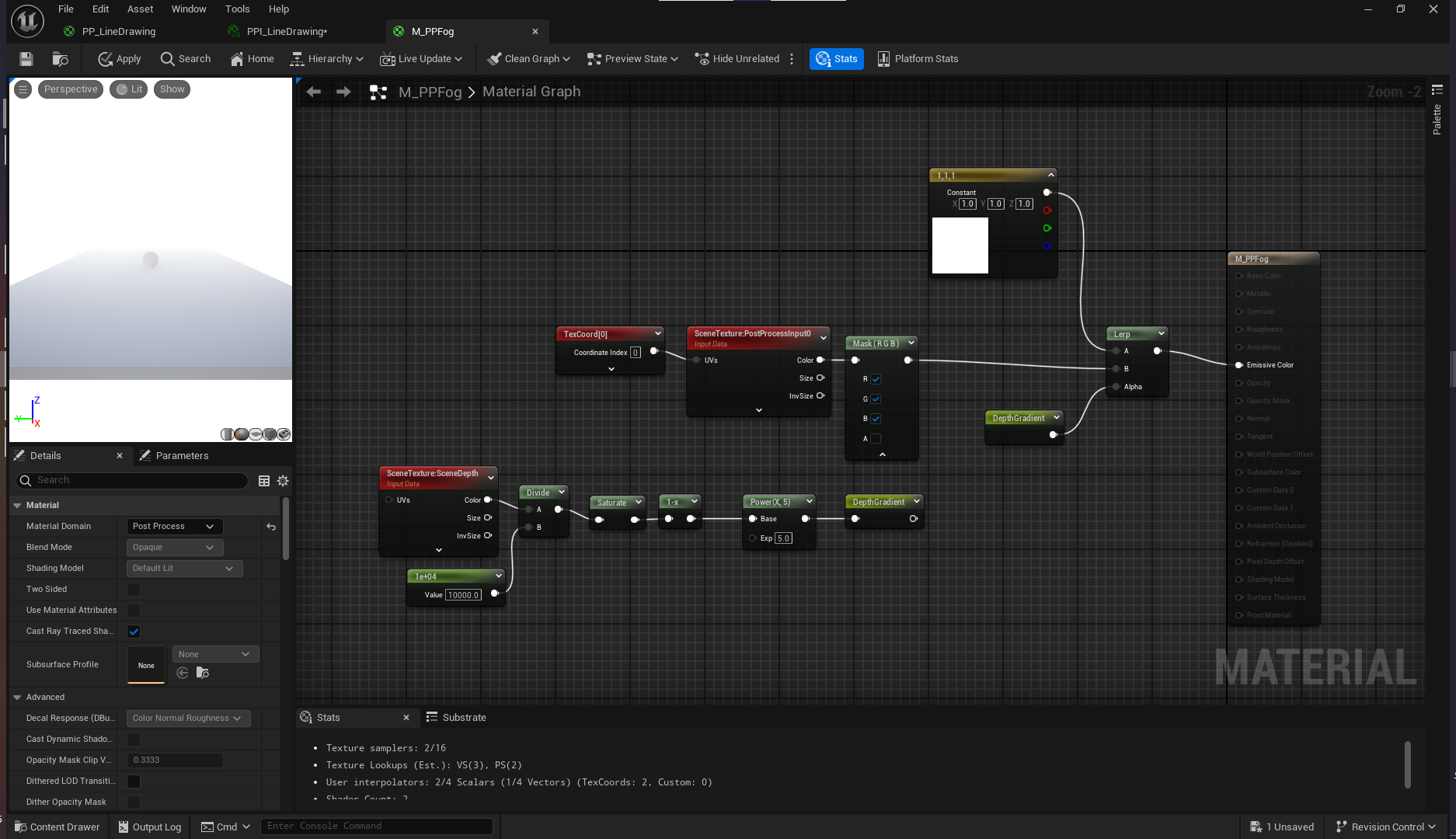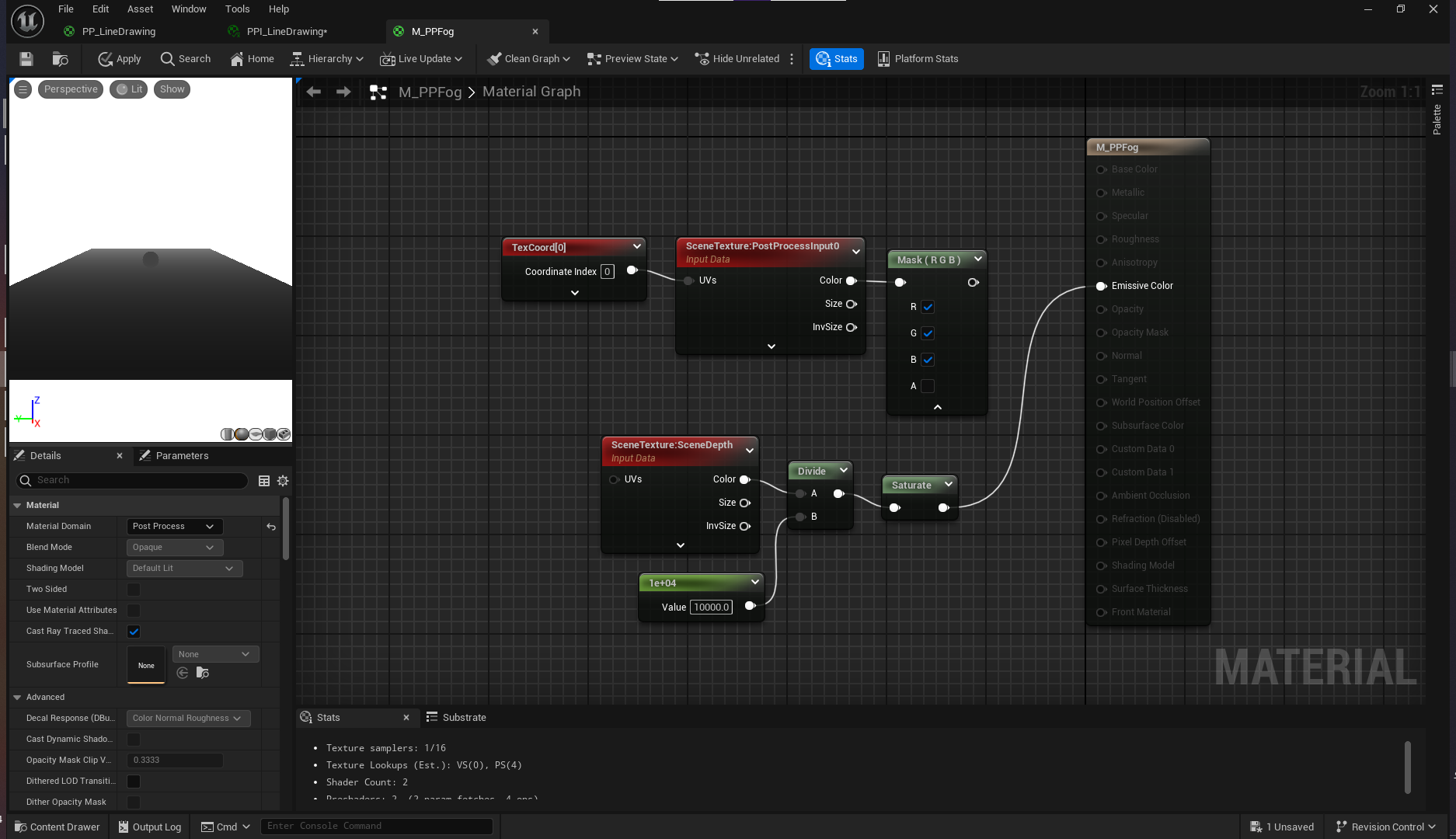 안개 효과를 만들기 위해 M_PPFog를 생성한다.