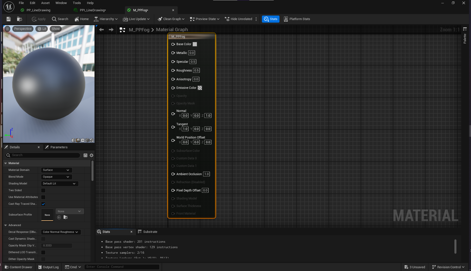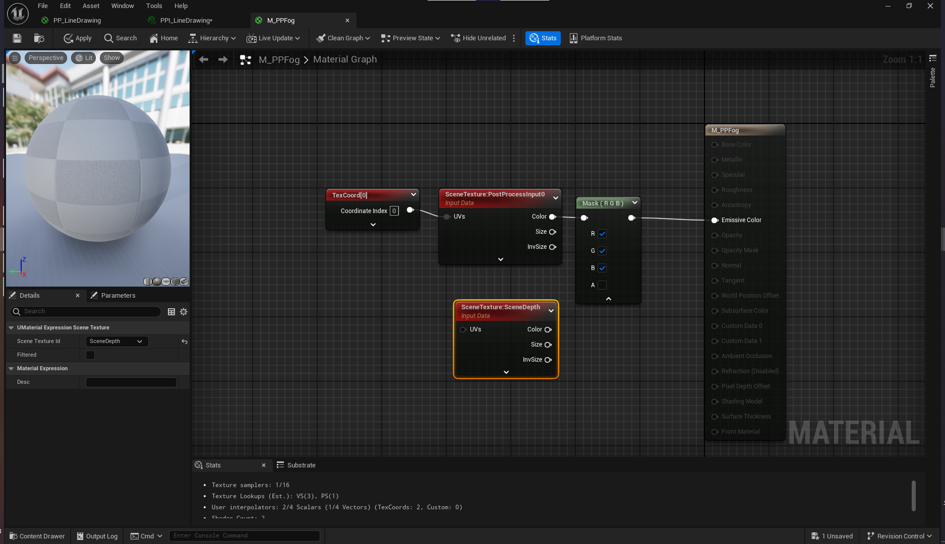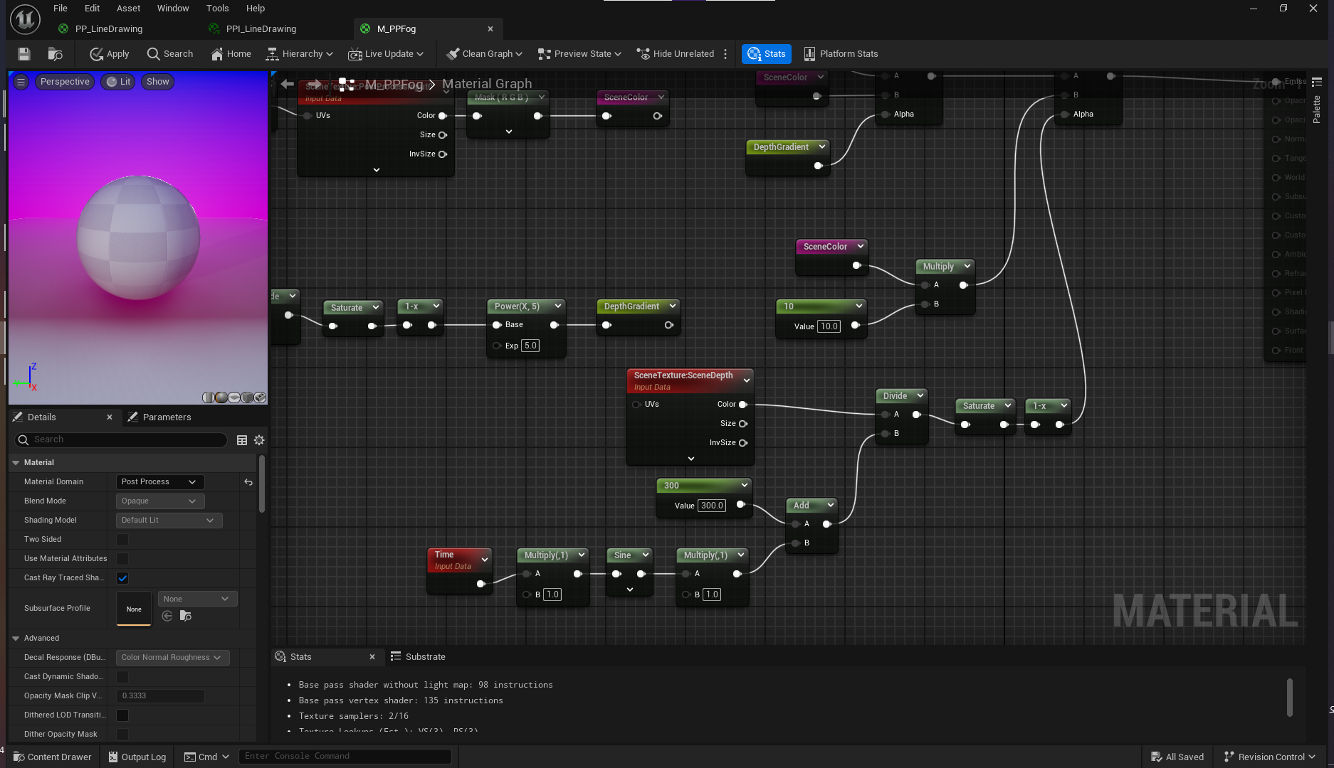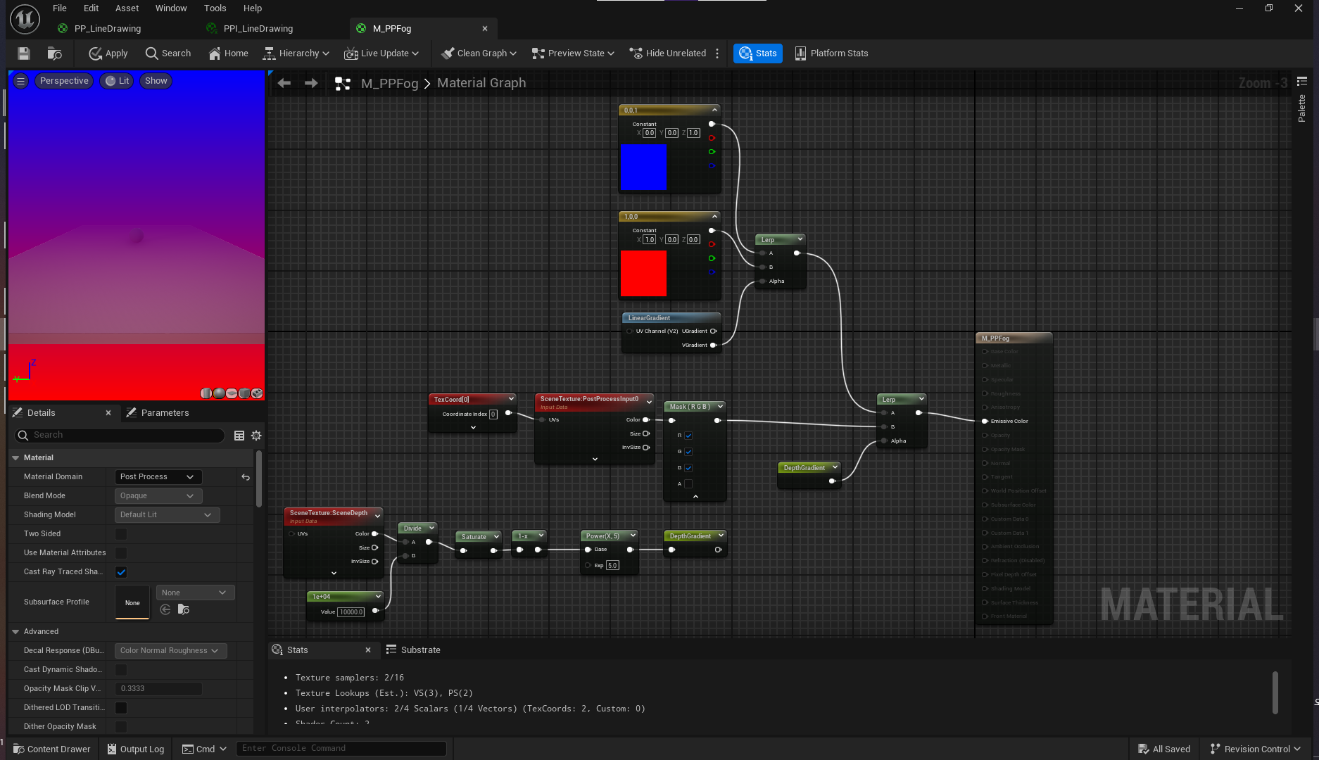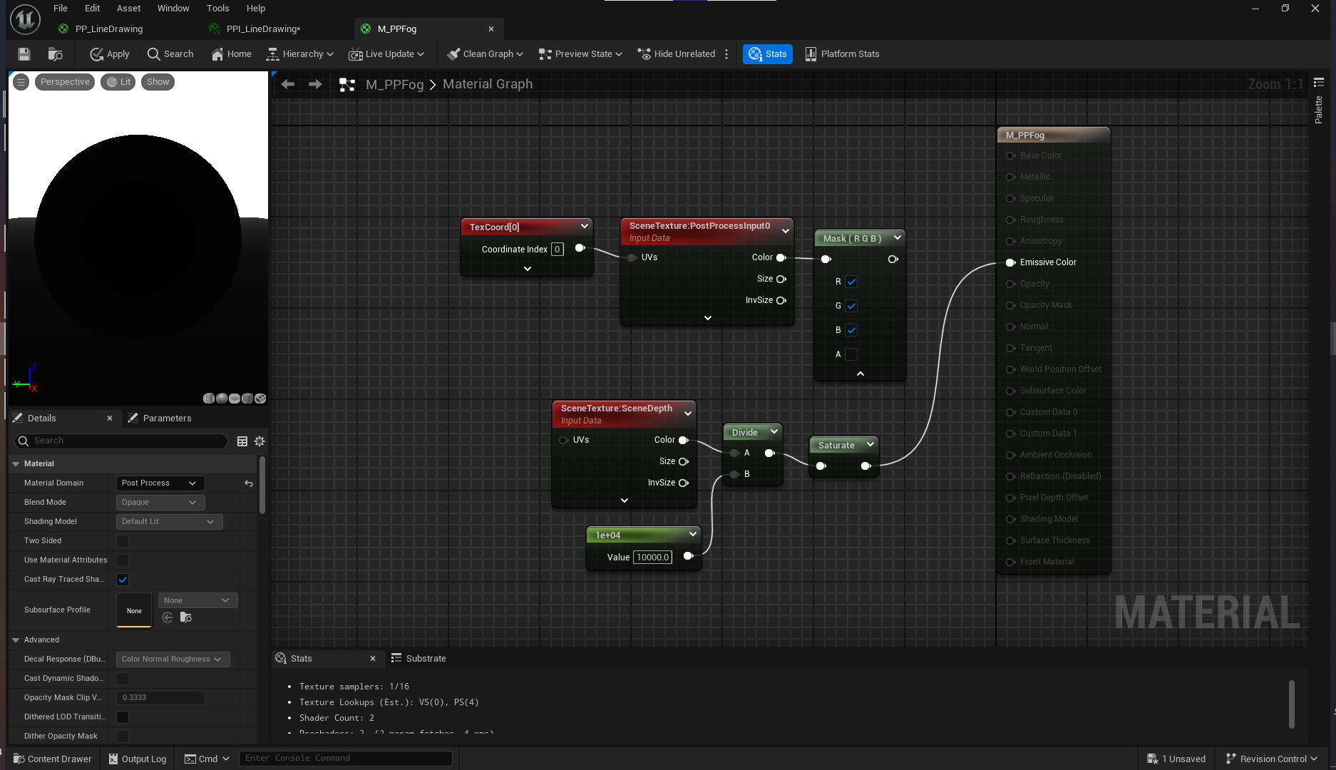 안개 효과를 만들기 위해 M_PPFog를 생성한다.