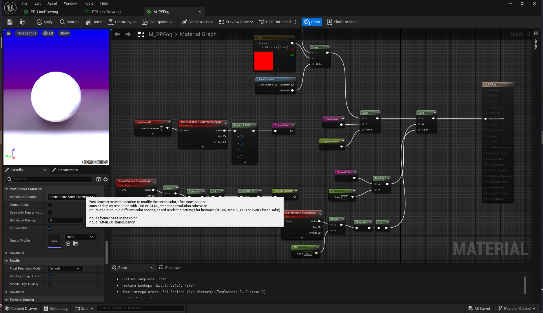 Blendable Location 옵션을 보면 Scene Color After Tonemapping으로 되어있다.