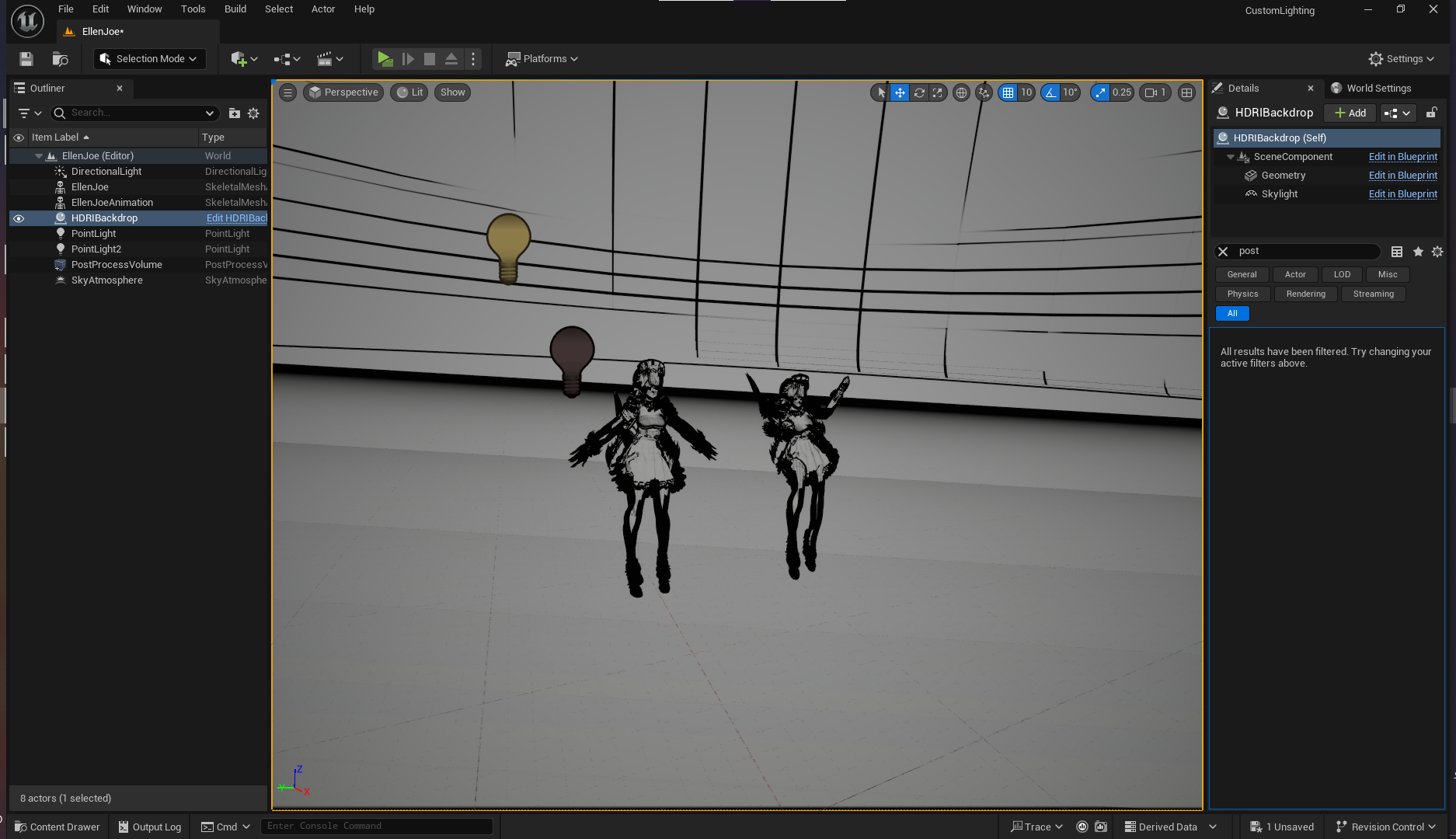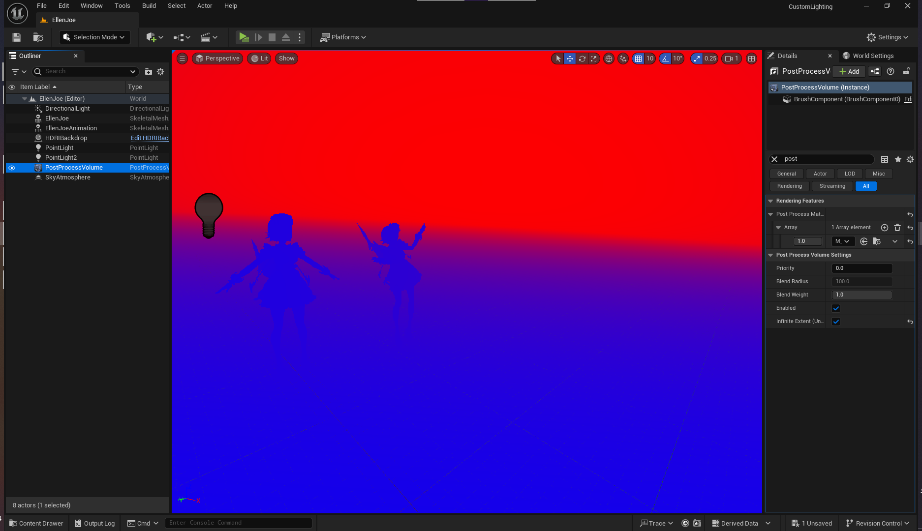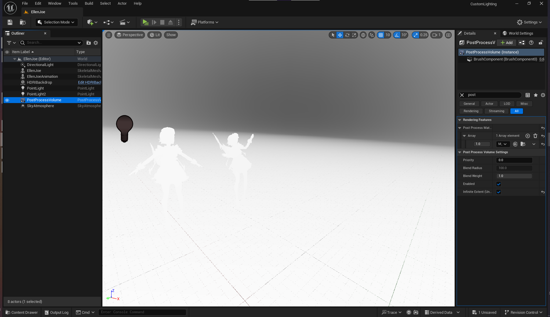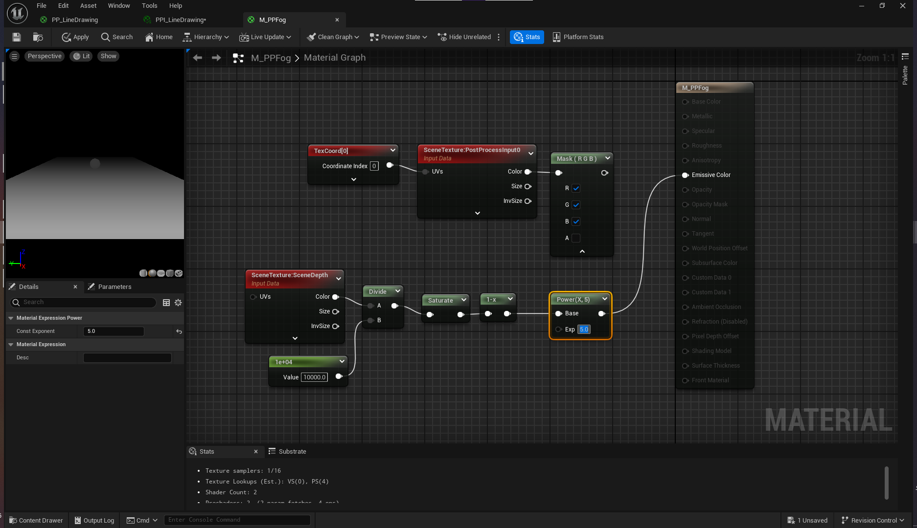 PostProcessVolume의 Post-Process Material에 PPI_LineDrawing을 적용 해 준다.
