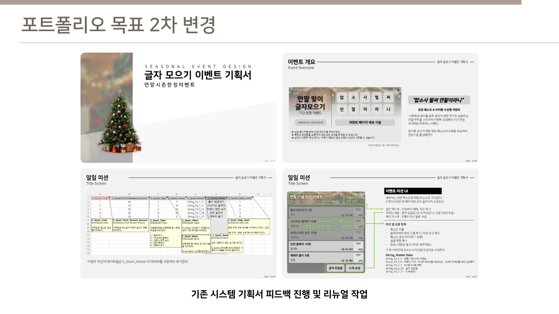 | 게임시스템기획포트폴리오 14주차 - 기말 과제 제출 공지, 문서 작성 진행 (0) | 2024.12.12 |