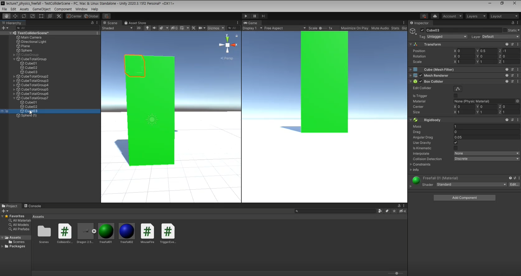 - Box, Sphere, Capsule, Mesh Colider가 대표적이다.