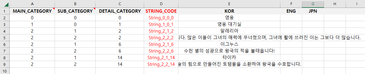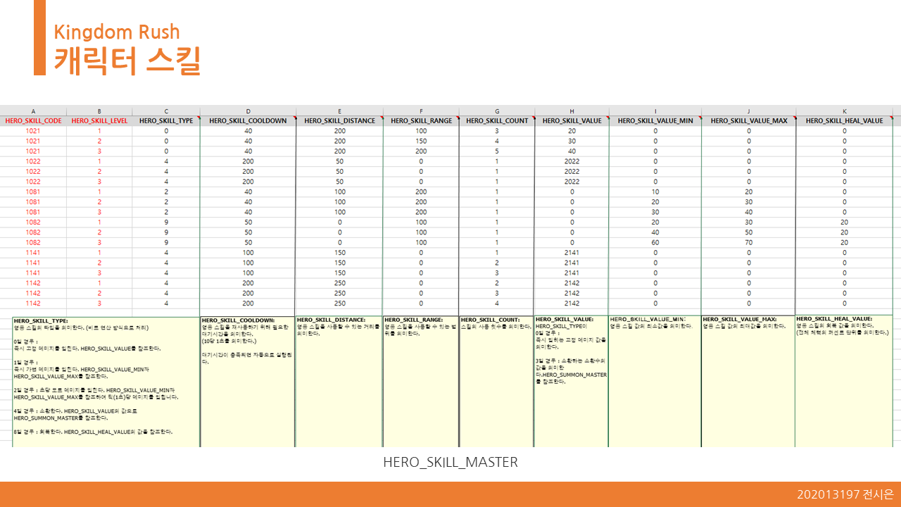 - 킹덤러쉬에서 사용될 신규 영웅을 기획하고 만들기 위해 필요한 데이터 구조화 하기