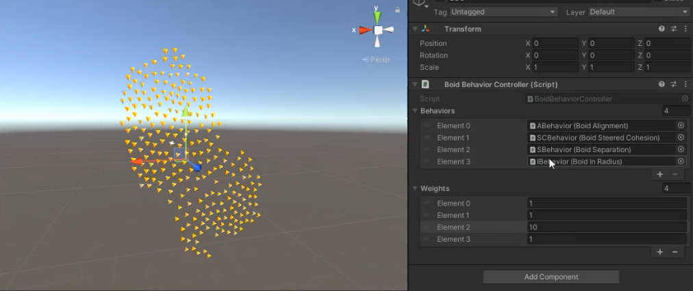 - BoidBehaviorController 스크립트 컴포넌트 추가