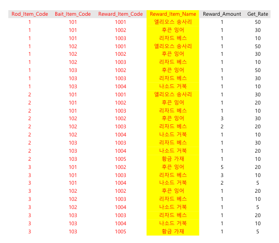 1. 낚시대의 등급이 높으면 더 좋은 결과 아이템이 나온다.