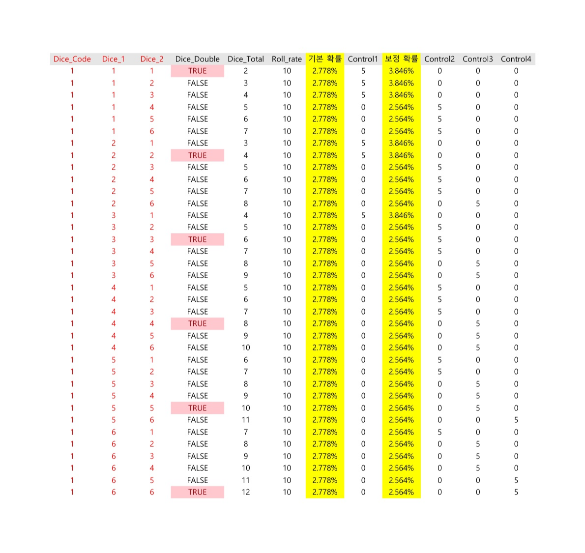 최대 2개까지 랜덤 능력치가 붙을 수 있도록 게임 데이터를 설계 해 보고 차이점을 이해하는 실습 진행.