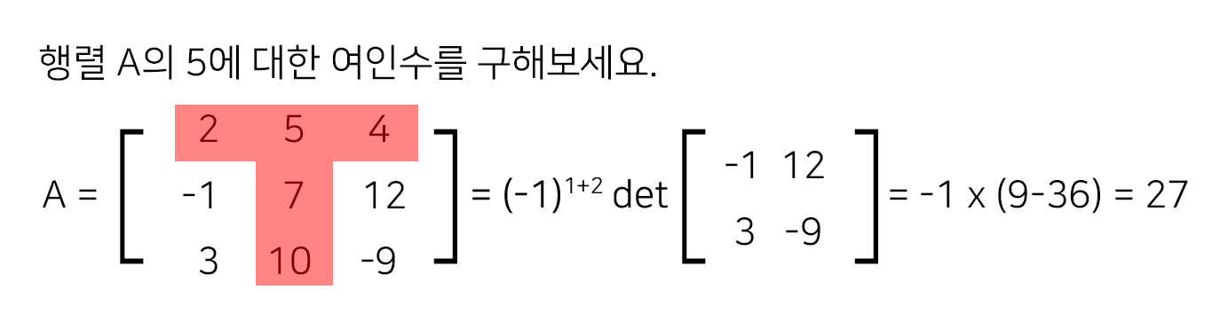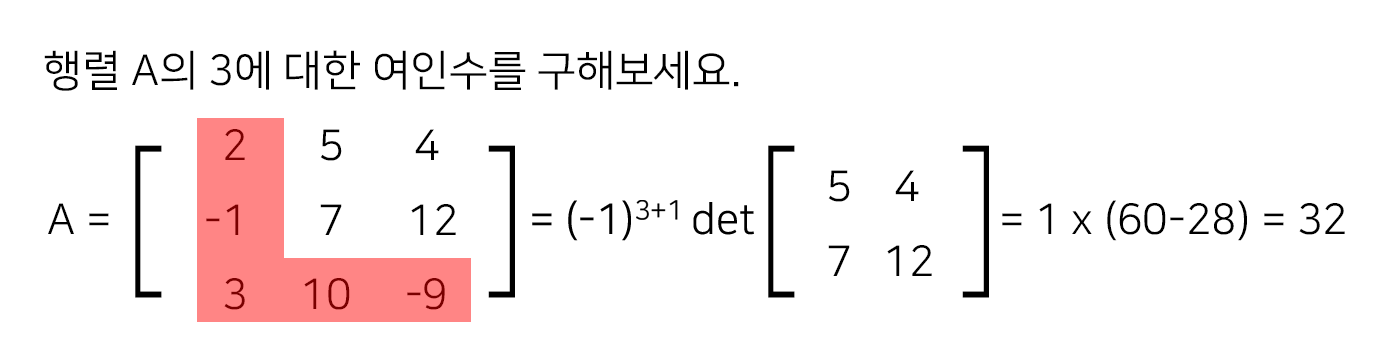 정사각행렬 A의 원소 aij에 대한 여인수 Cij는 지정된 원소의 자리 부호를 적용한 소행렬식 (Minor)