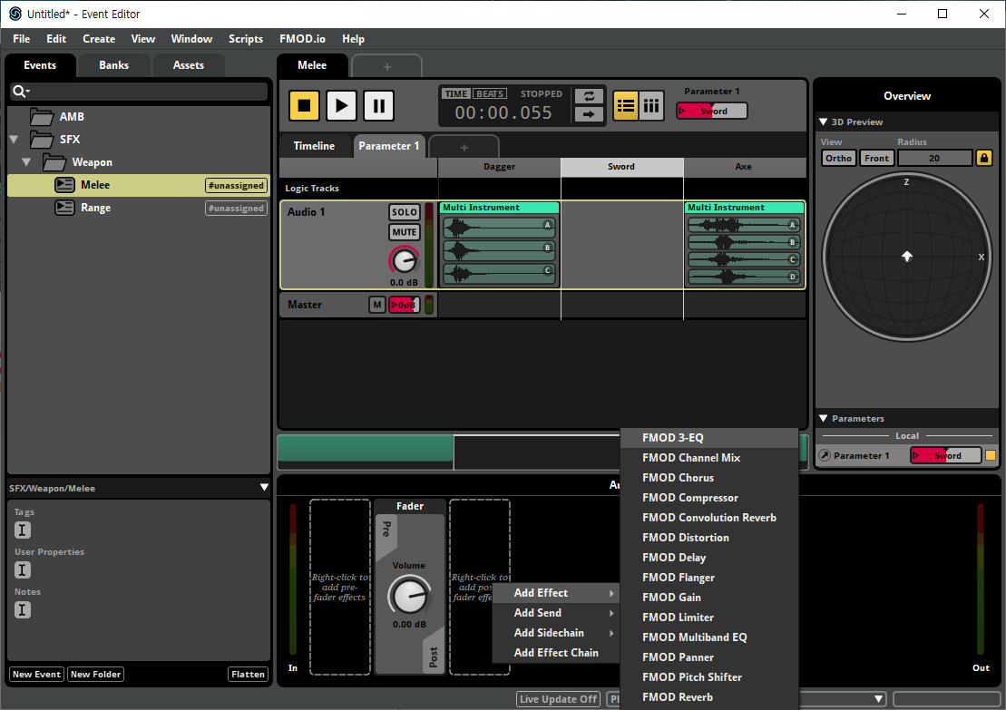 하지만 이렇게 구현하면 수많은 사운드의 변수를 다 처리 해 줘야하는 노가다가 발생한다. (금방 할 수는 있음.)