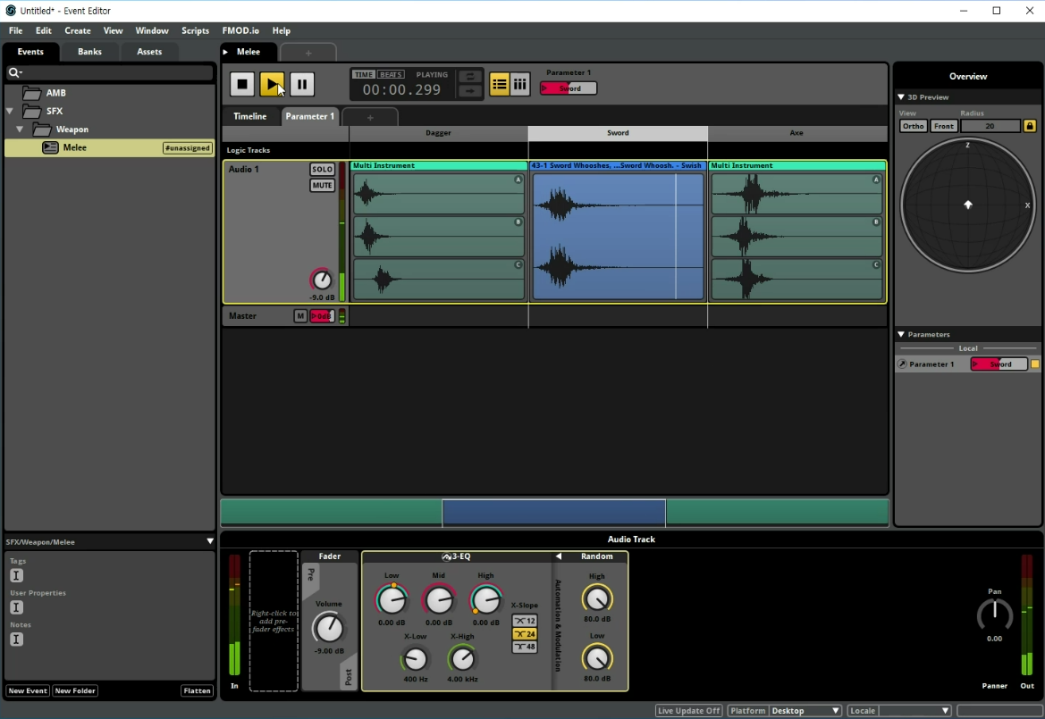 무기의 종류와 타격되는 종류에 따라 다르게 나오는 사운드 제작